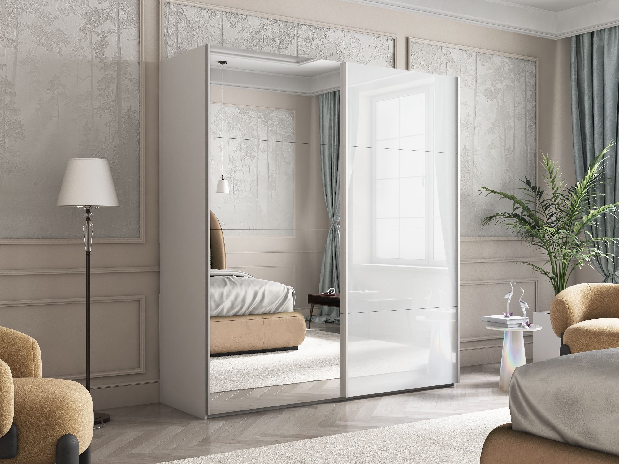 Отзывы о Столплит Шкаф Эста дуо Стекло белое/зеркало 2400 х 2000 х 660 Белый снег