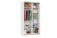 Лицевые элементы оформлены кромкой ПВХ толщиной 2 мм . Внутренние и скрытые детали защищены кромкой ПВХ толщиной 0,4 мм. Штанга для одежды расположена в левой части корпуса, выдерживает нагрузку до 22кг.