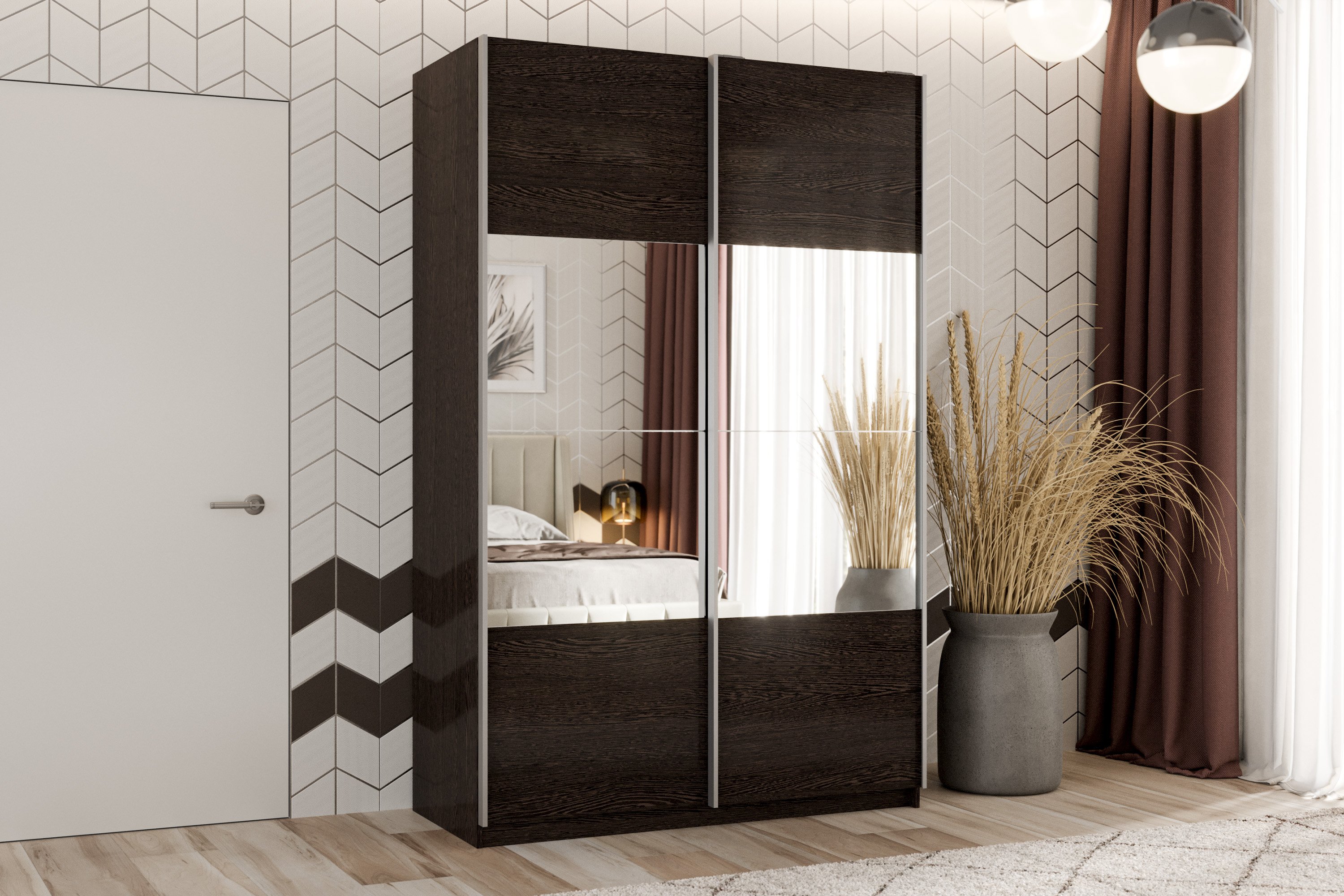 Шкаф-купе Smart 1422 2х дверный (фасады ЛДСП/зеркало) профиль серебро (Венге)