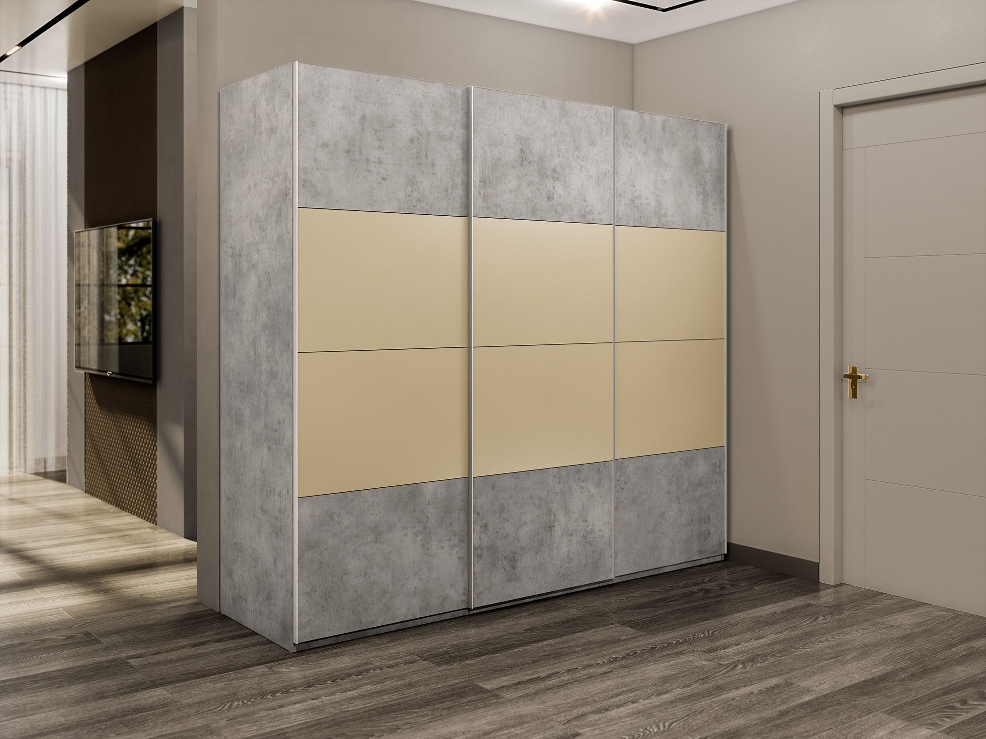 Отзывы о Столплит Шкаф-купе Эста 3-х дверный ДСП/Стекла фисташка/Доводчик 240х66х240 Бетон
