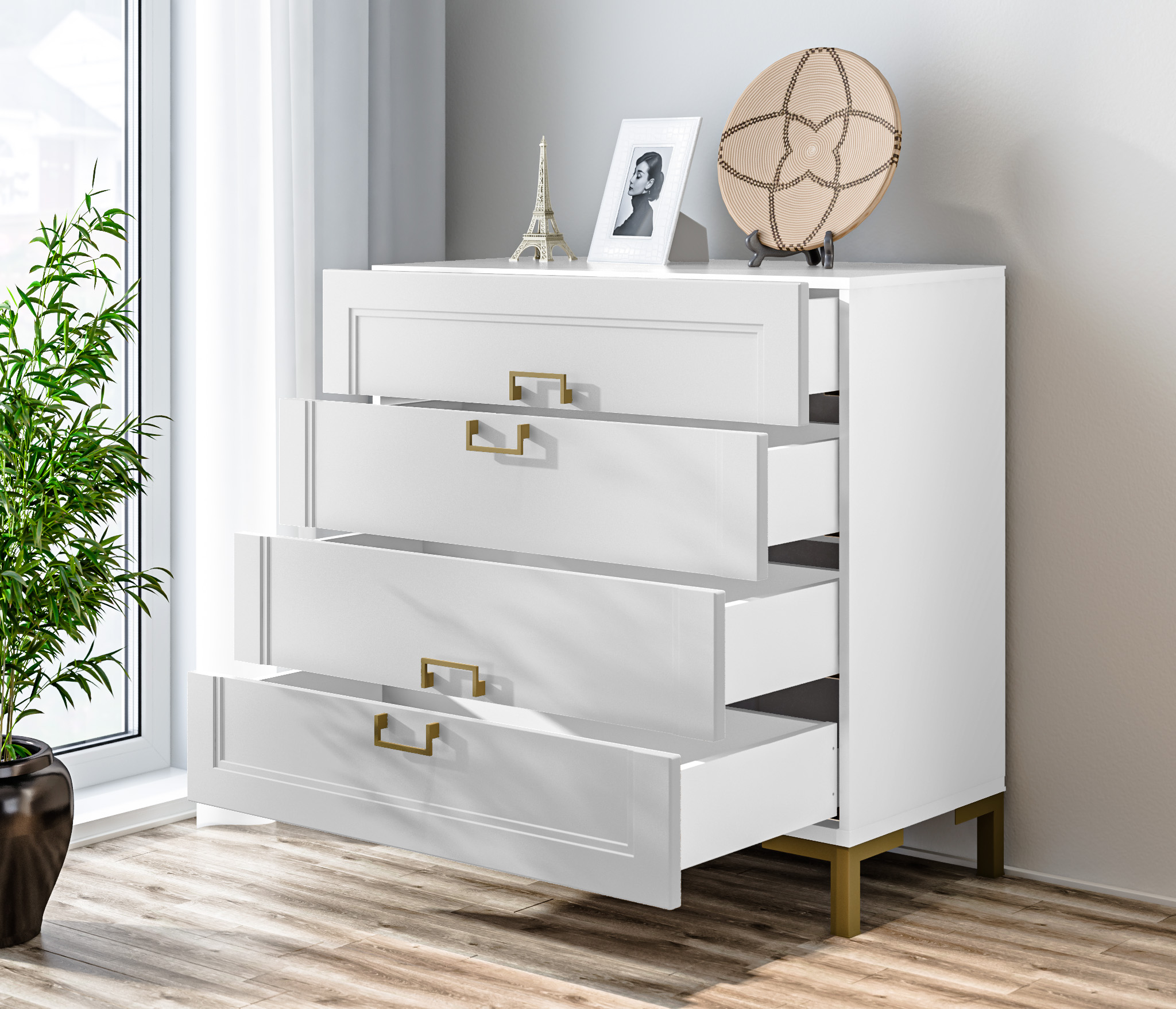 Комод Ассоль СБ-3434 Белый/МДФ Белый (Белый) Код 00000329353