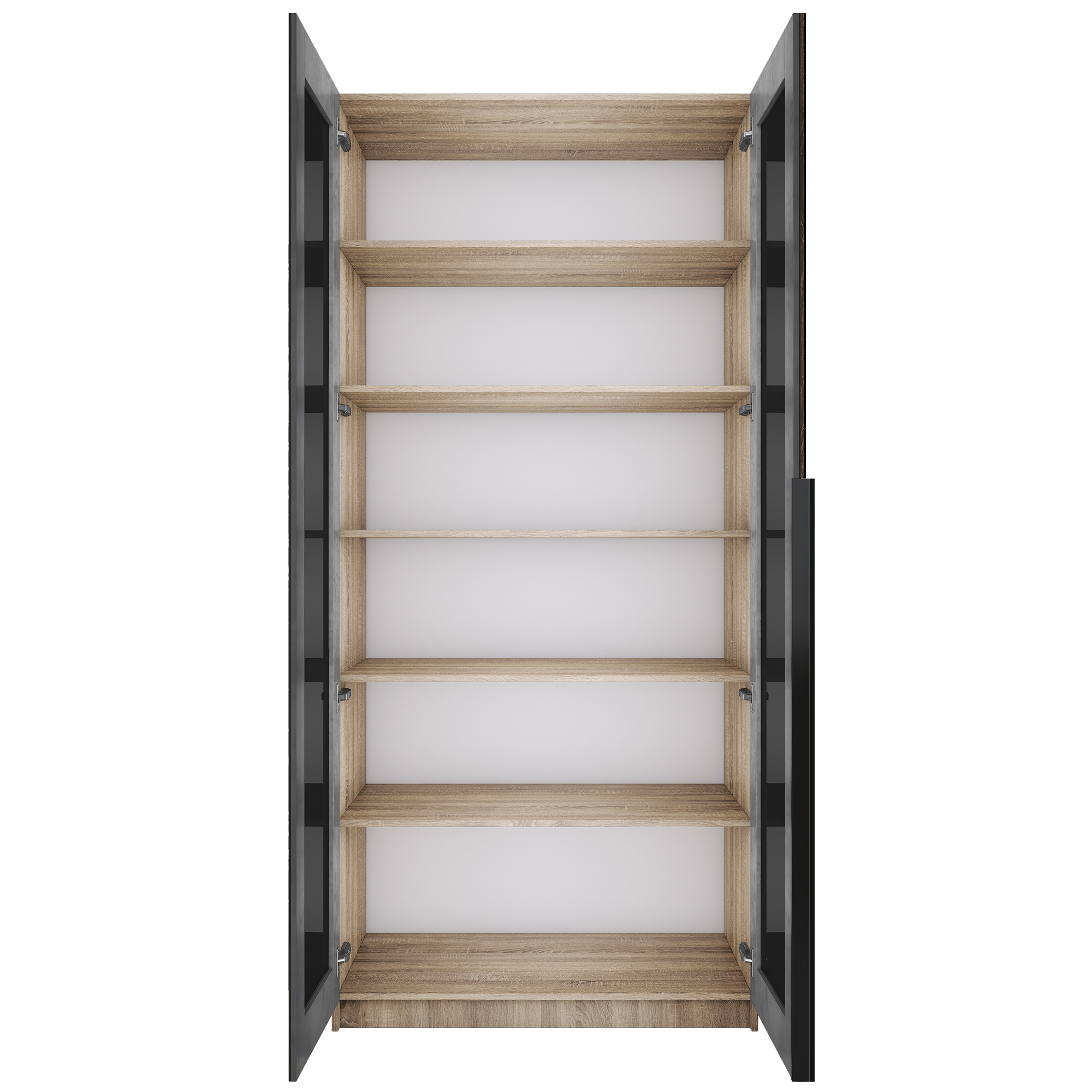 Шкаф распашной Е1 Локер 101x52.5x220 см, с черным стеклом и полками (Дуб сонома)