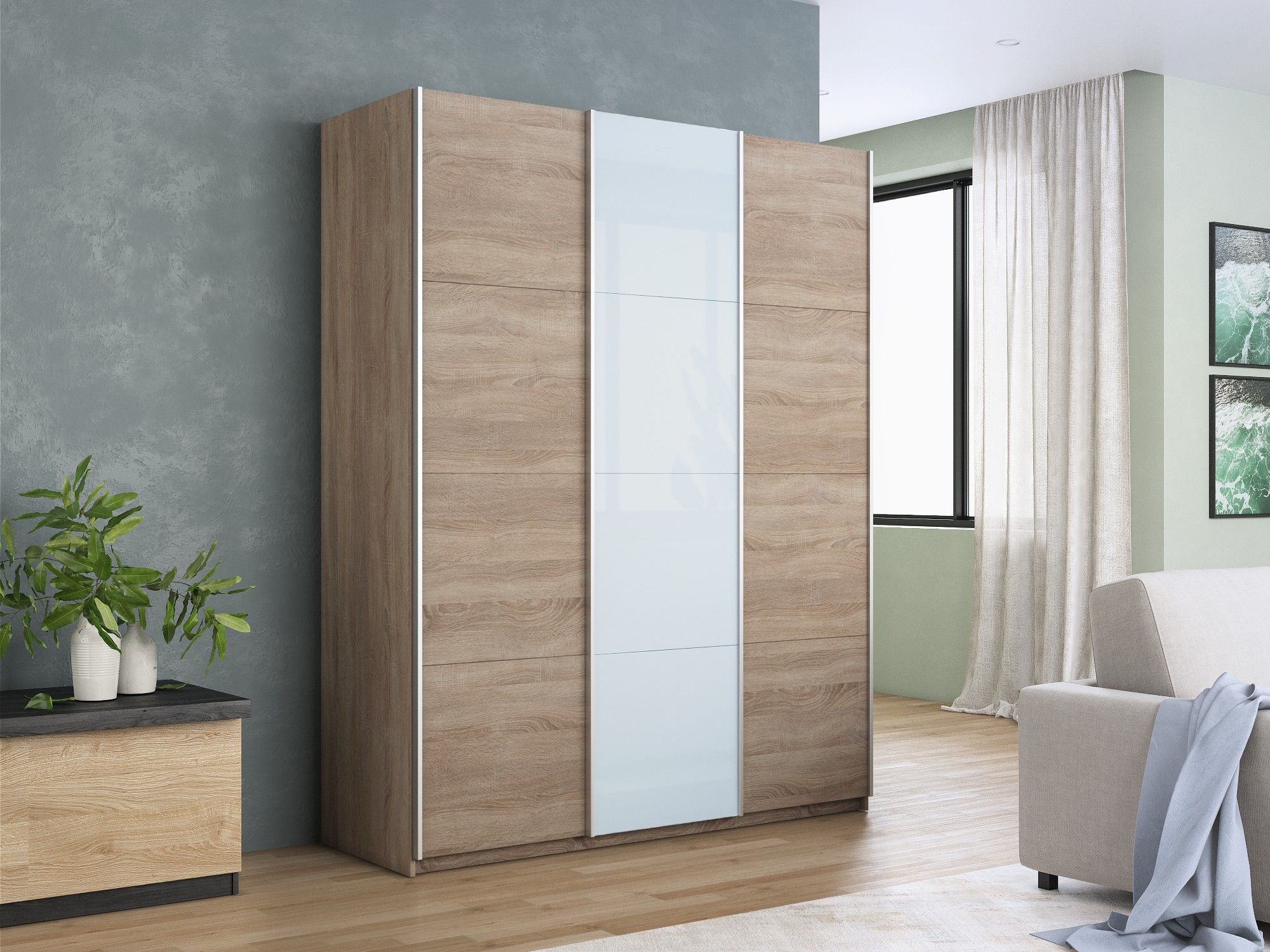 Отзывы о Столплит Шкаф-купе Прайм 3-х дверный ДСП/Стекло белое/Доводчики 210х57х230 Дуб сонома