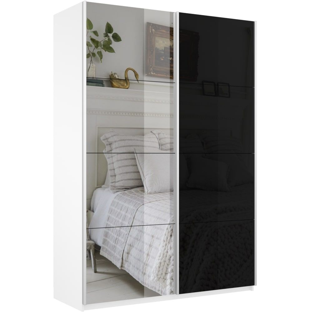 Отзывы о Столплит Шкаф-купе Прайм 2х дверный Зеркало/Стекло черное 160х57х230 Белый снег