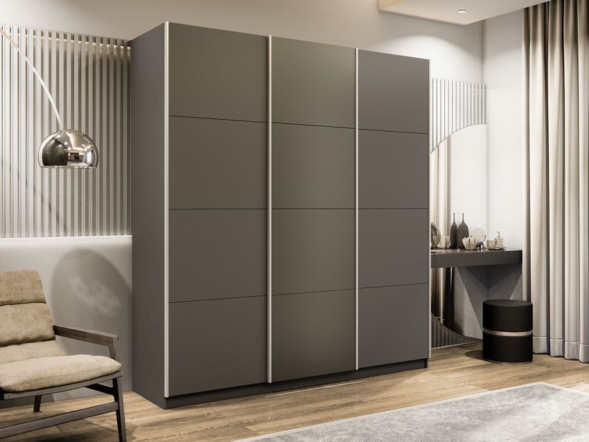 Отзывы о Столплит Шкаф-купе Прайм Широкий 3-х дверный ДСП/Стекла хаки/Доводчики 240х57х230 Диамант серый