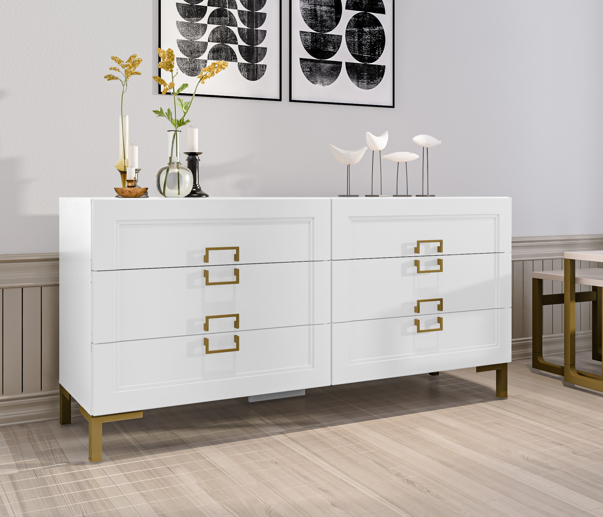 Ассоль СБ-3435 Комод Белый/МДФ Белый