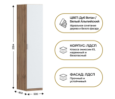 Отзывы о Столплит Шкаф однодверный Макс 500 мм, вариант №1 (Дуб Вотан ЛДСП) Белый Альпийский