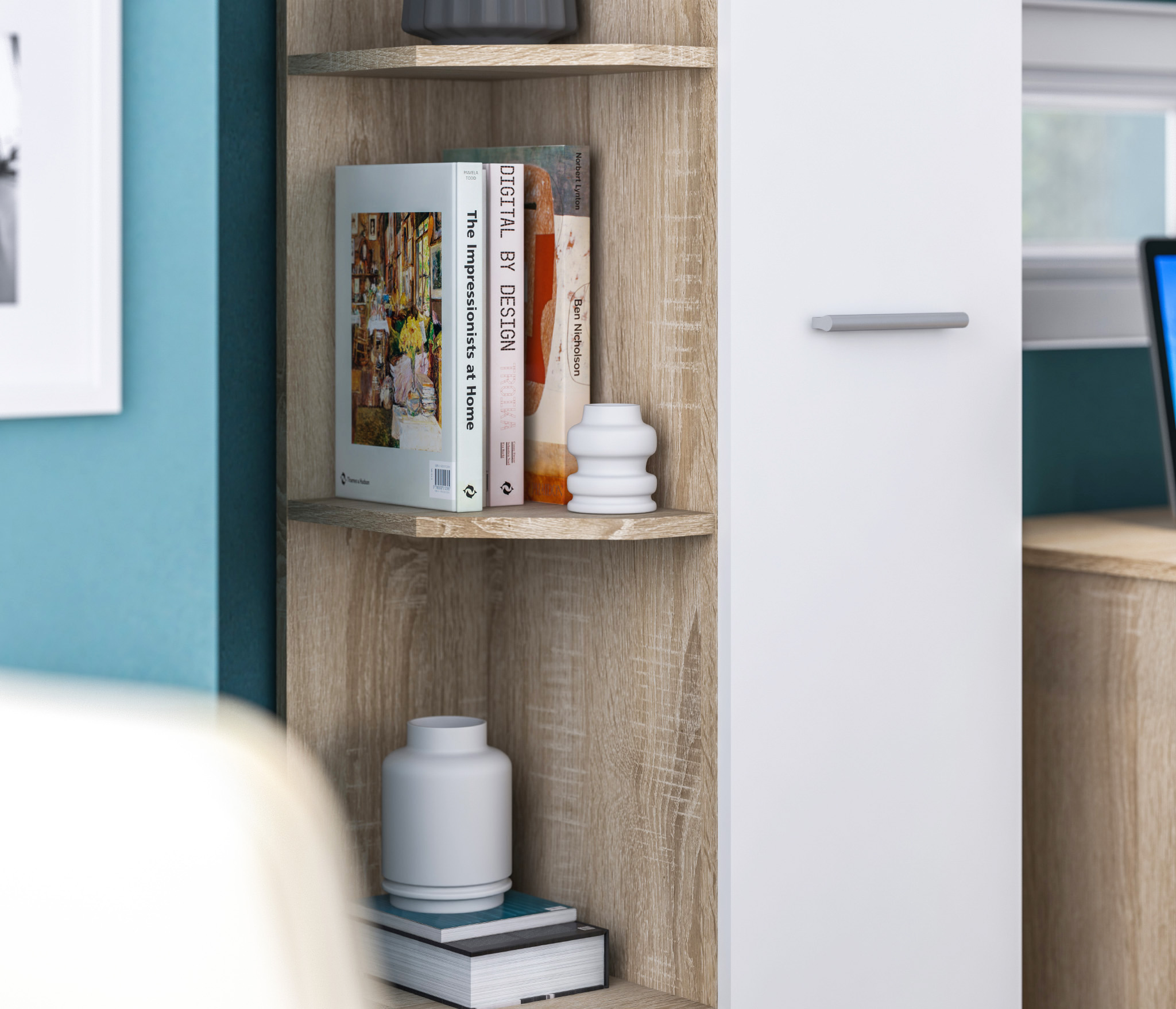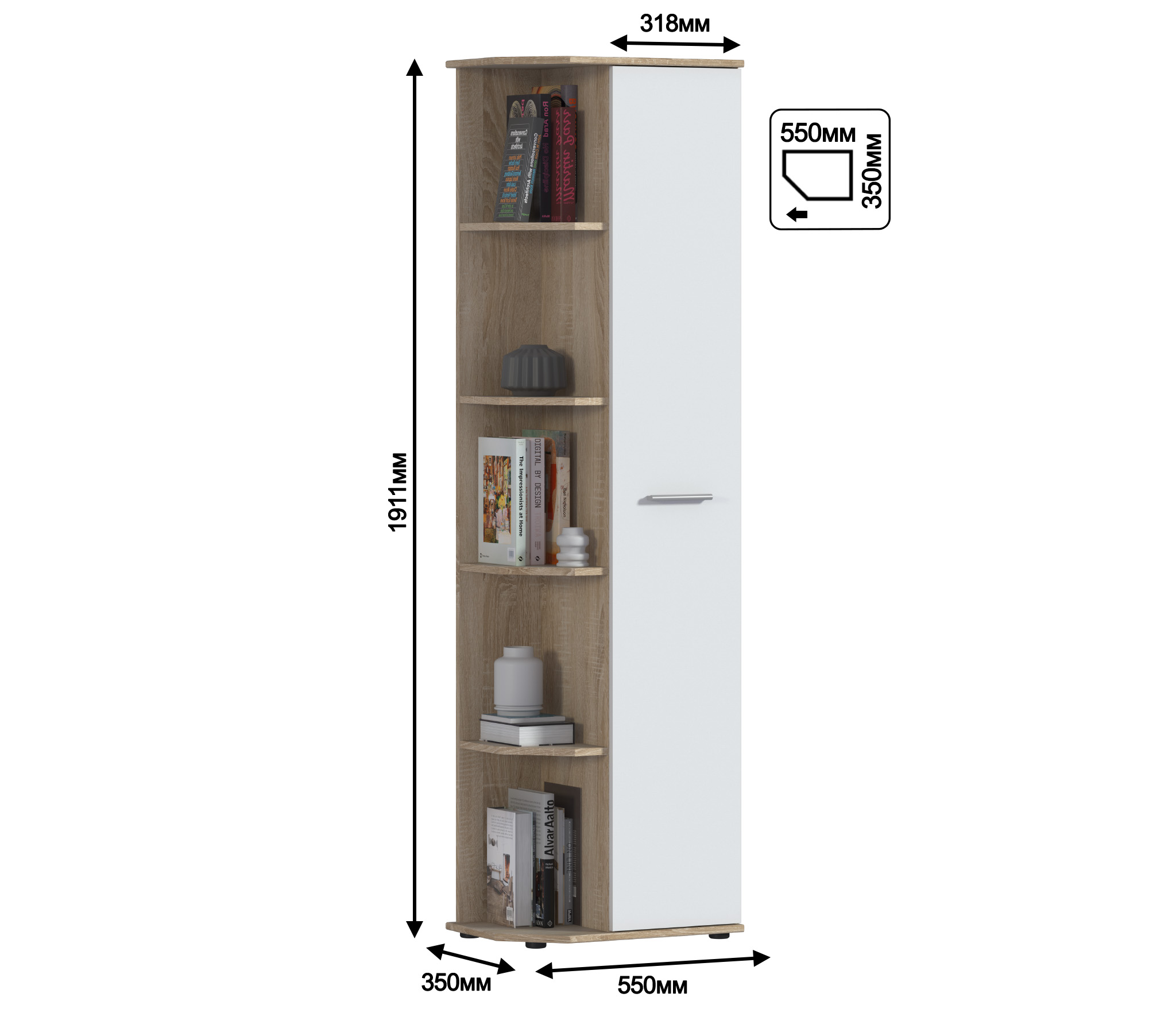 Шкаф торцевой Мамбо СБ-2754 (Дуб Сонома/Белый) Код 00000216388