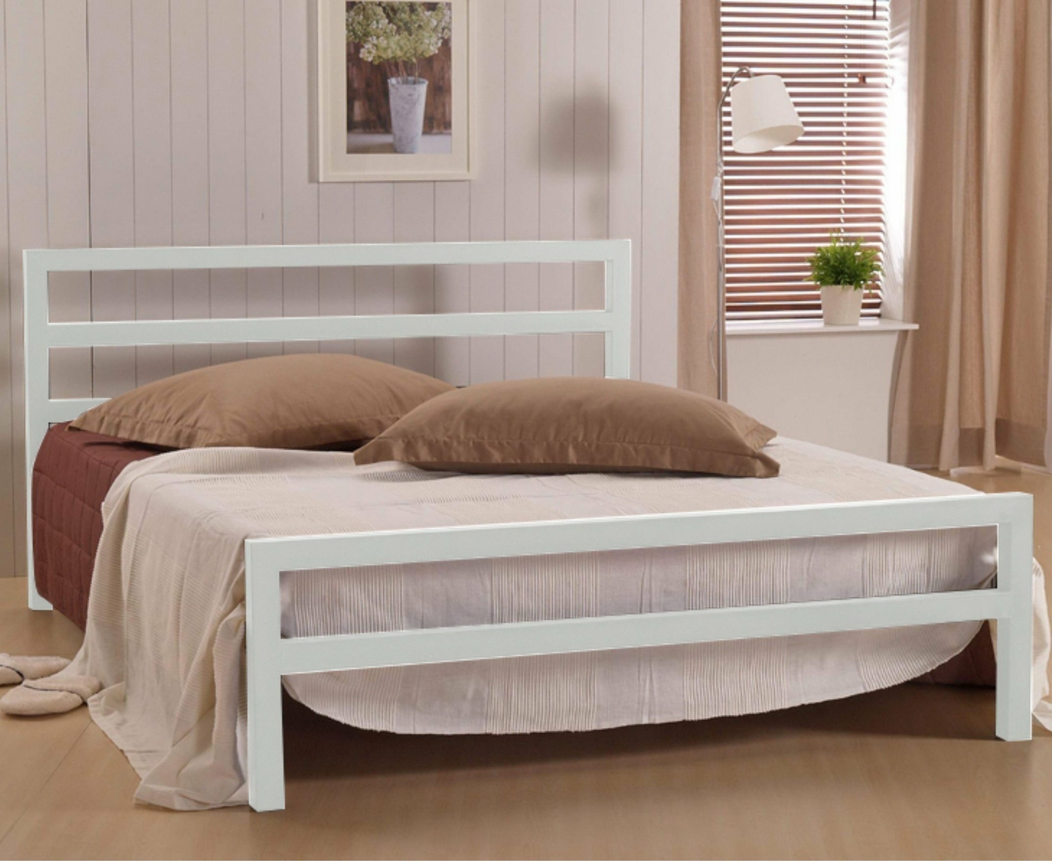 Благодаря отсутствию сплошного полотна изголовья и основания и его замены на горизонтальные перекладины модель выглядит изящно и совершенно не громоздко, благодаря чему может гармонично дополнить любой интерьер в современной стилистике.