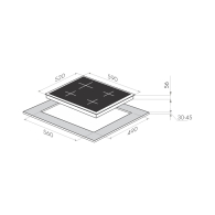 4 конфорки мощностью: 1400 (бустер до 1850), 1400 (бустер до 1850), 1400, 1400 Вт