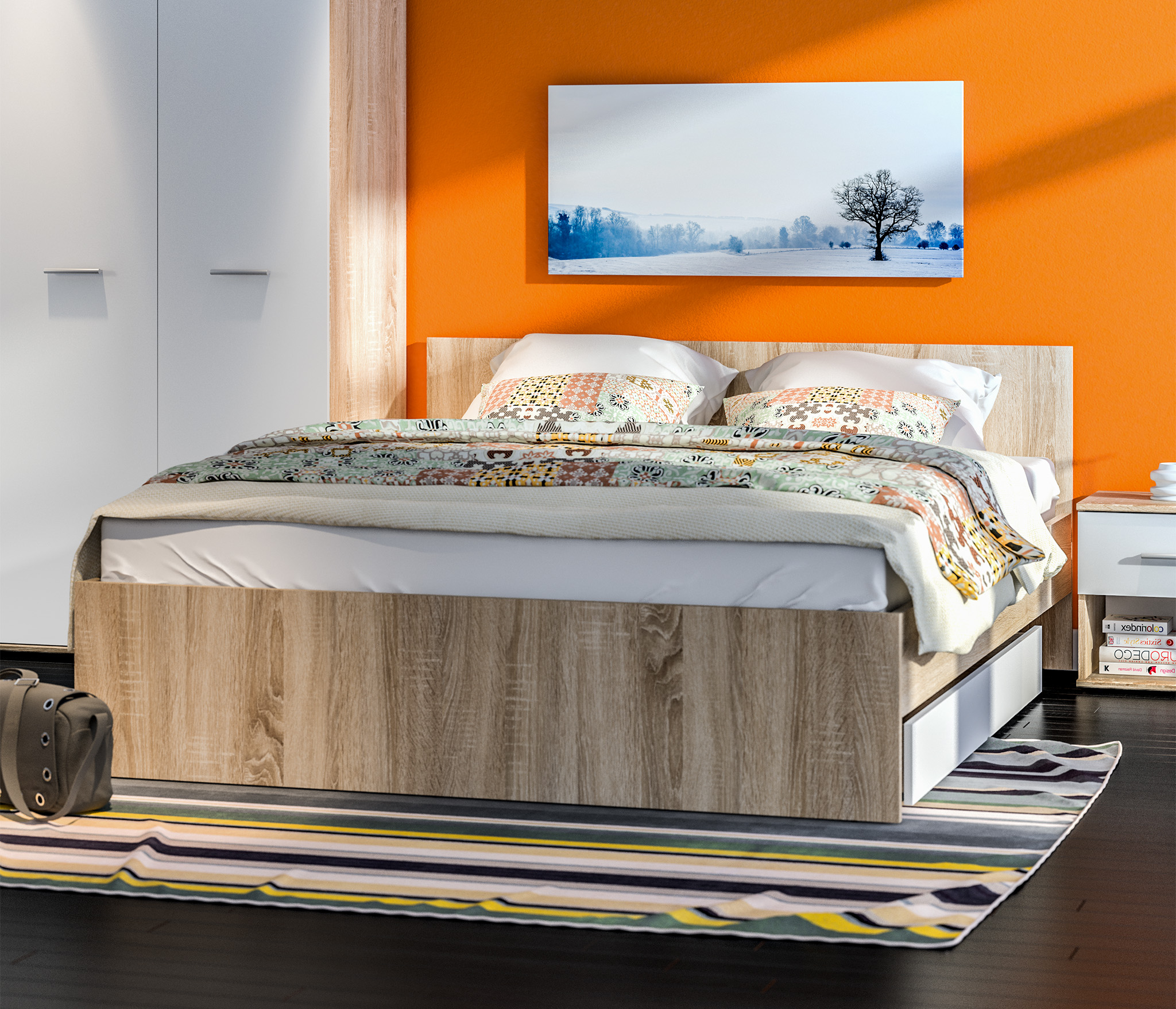 Мамбо СБ-2372.Н Кровать Дуб Сонома/Белый