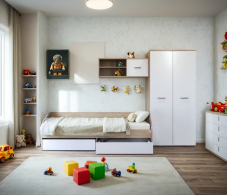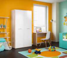 Габаритные размеры шкафа – ширина 90 см, высота 191 и глубина 55 см, позволят разместить его в небольшой прихожей, детской комнате или кабинете. Визуально шкаф можно разделить на два отделения. Большое отделение со штангой для развешивания верхней одежды и секция с тремя вместительными полками. Оба отделения объединены верхней антресолью. Произведен шкаф из современного и качественного материала. Внешняя отделка выполнена в двух оттенках. Цвет корпуса «Дуб Сонома», а фасадные поверхности – в белом цвете.
