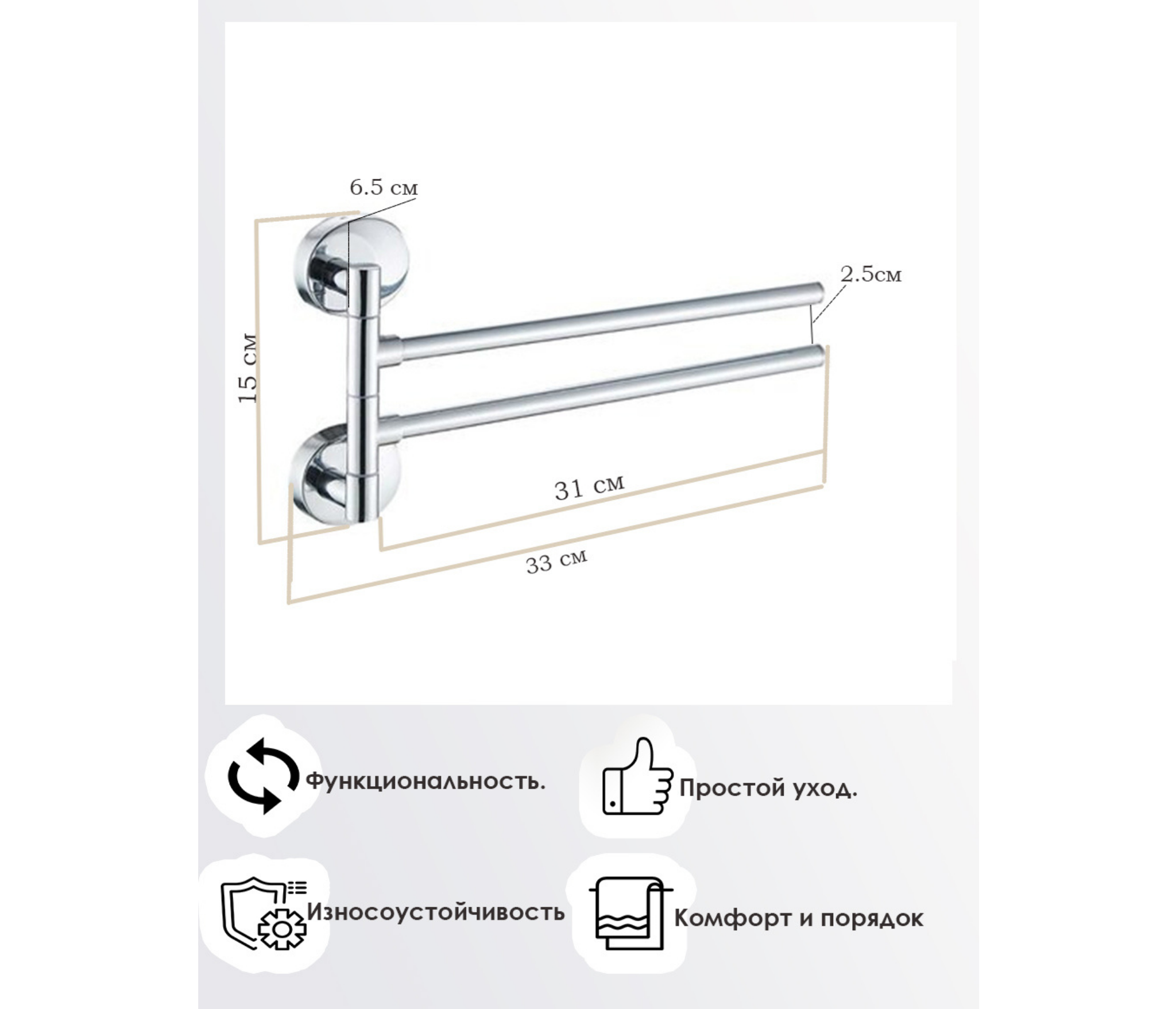 Держатель для полотенец - это отличное решение для рационального использования пространства в ванной комнате. Благодаря раздвижным спицам, полотенца будут оставаться сухими и чистыми. А удобное крепление позволяет установить держатель там, где вы хотите