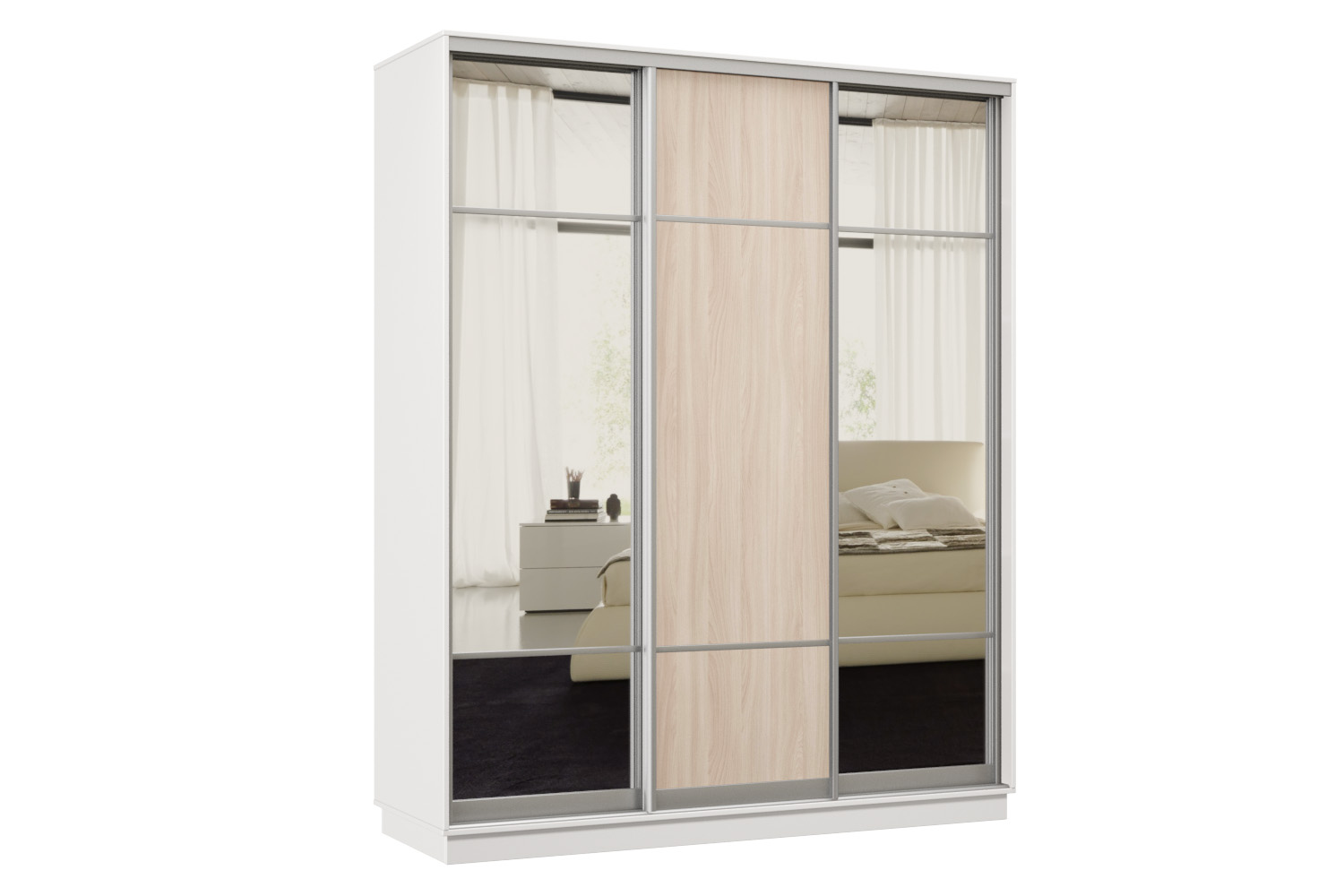 Шкаф-купе Премьер Лайт 35 (11;08;11) трехдверный (Ясень шимо светлый/Белый)