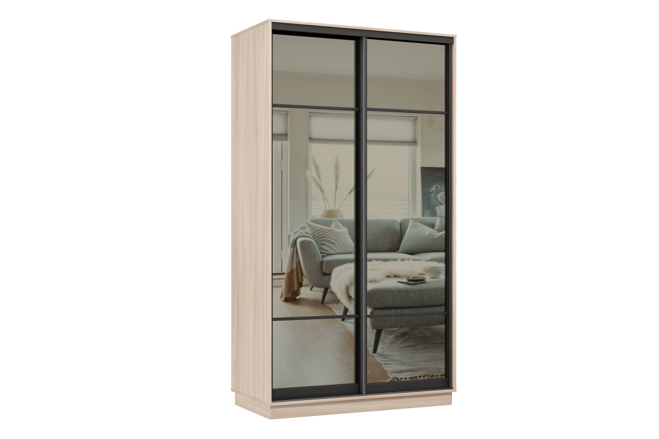 Отзывы о Столплит Шкаф-купе Премьер МИНИ 04 (11ЗГ;11ЗГ) фасады зеркало графит/двухдверный/Профиль чёрный муар Ясень шимо светлый
