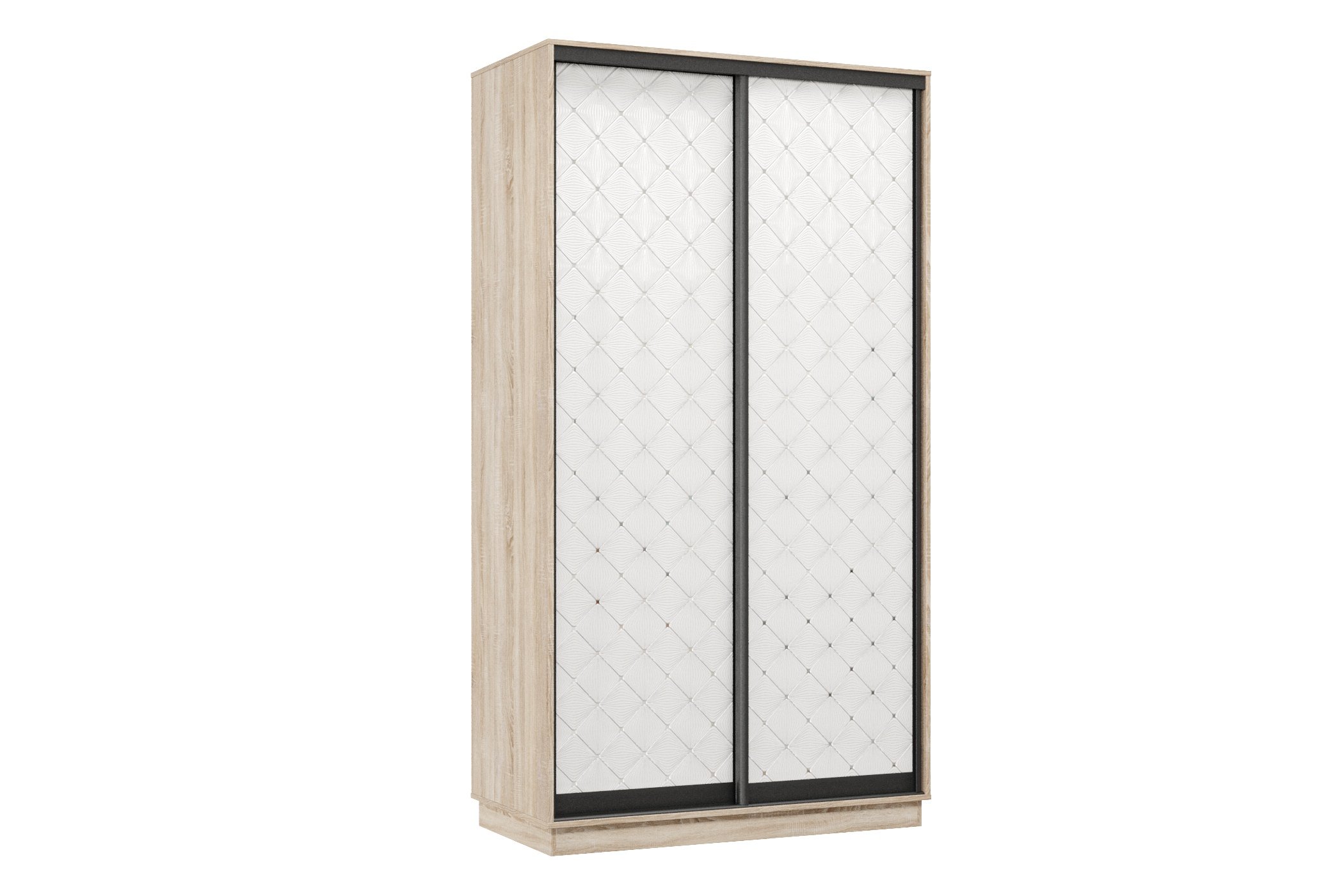 Шкаф-купе Премьер 09 (01РБ;01РБ) фасады ромб белый/двухдверный/Профиль чёрный муар (Дуб сонома)