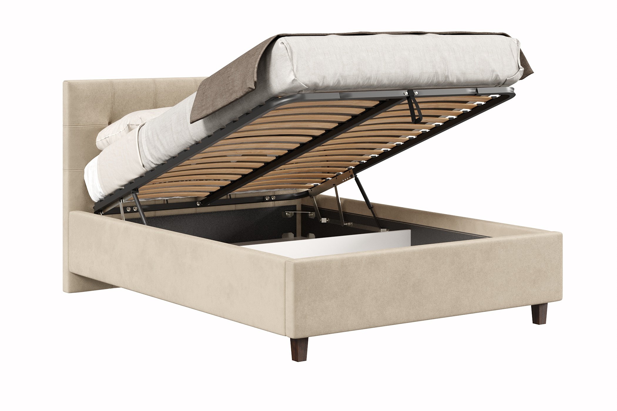 Кровать имеет нишу для хранения разных вещей, это очень удобно, если пространство в комнате не дает возможность поставить дополнительные шкафчики, либо полки.