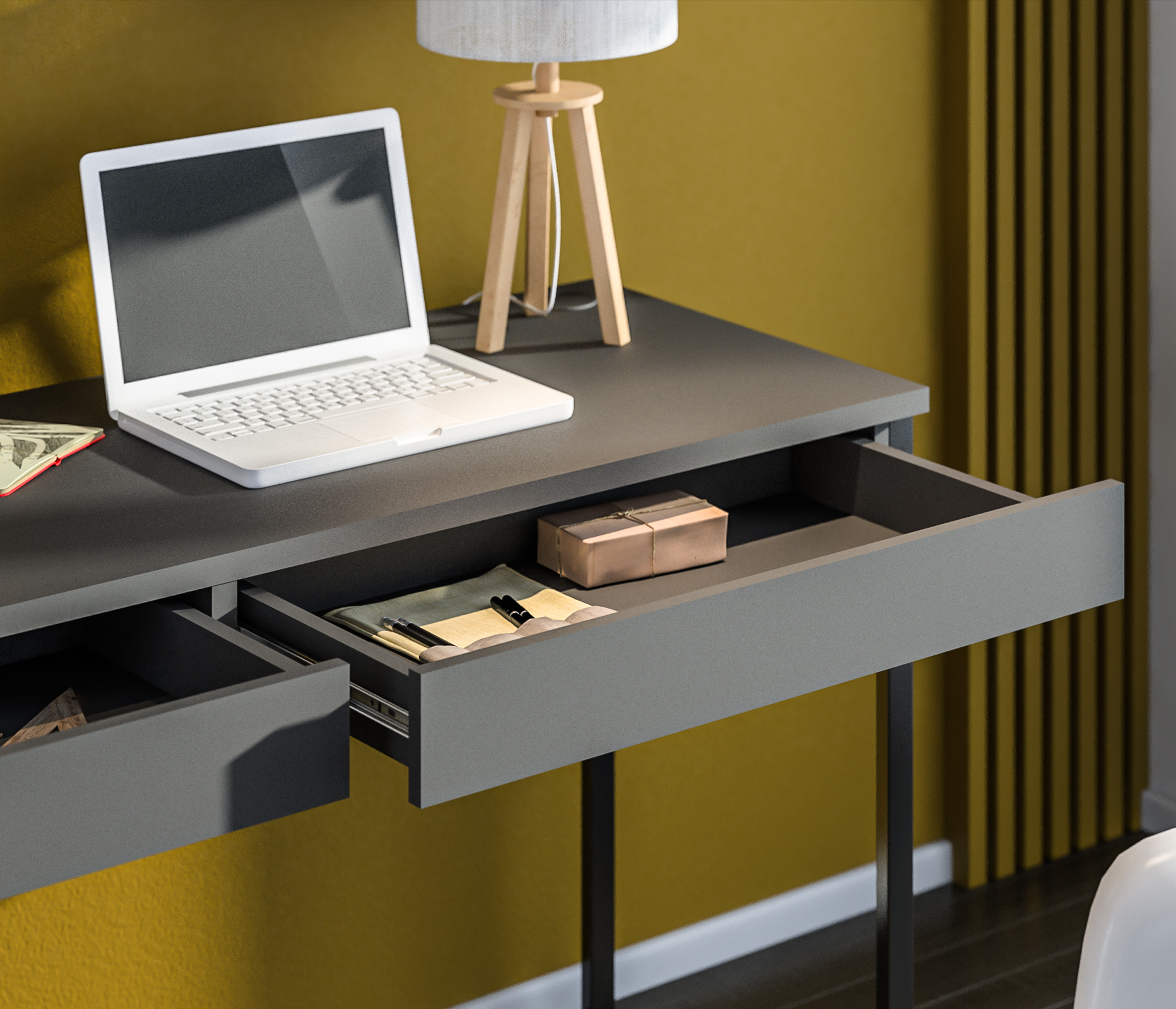 Мика СБ-3310 оборудован двумя ящиками, которые предлагают дополнительное пространство для хранения канцелярских принадлежностей, документов или других необходимых предметов, помогая поддерживать рабочую область в чистоте и порядке.