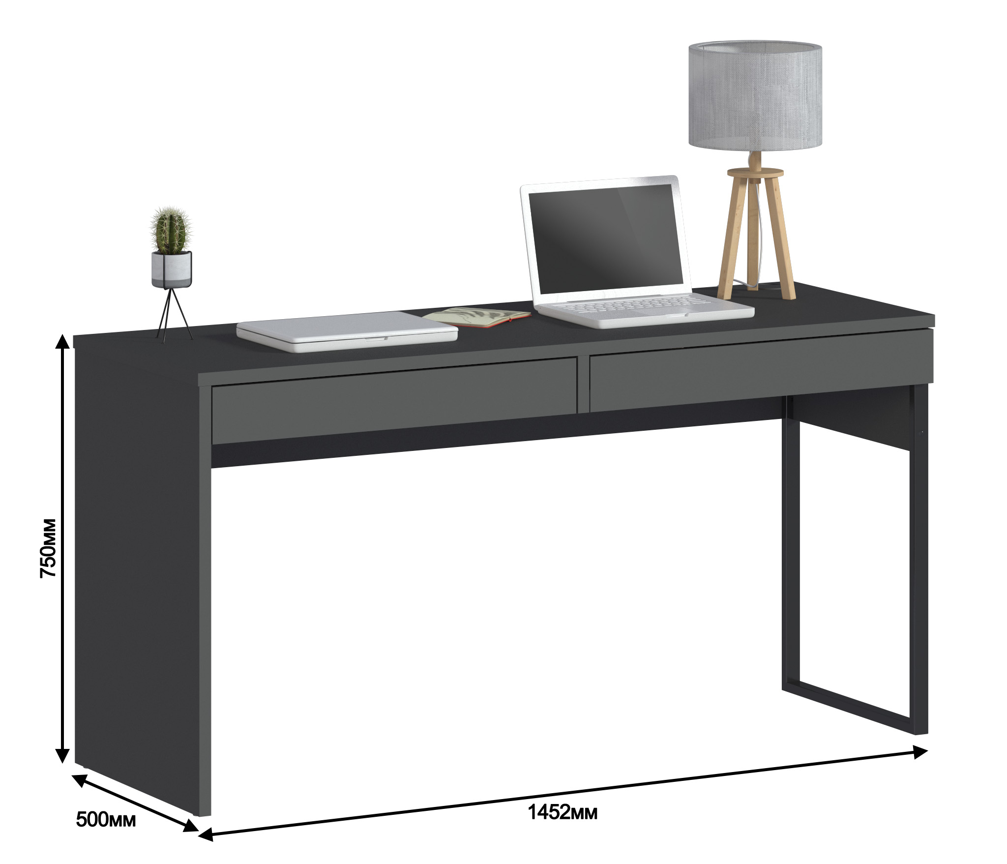 Размеры стола: 750х1458х500 мм, позволяют ему легко вписываться в любые пространства, делая идеальным кабинеты, офисы или домашние рабочие уголки.