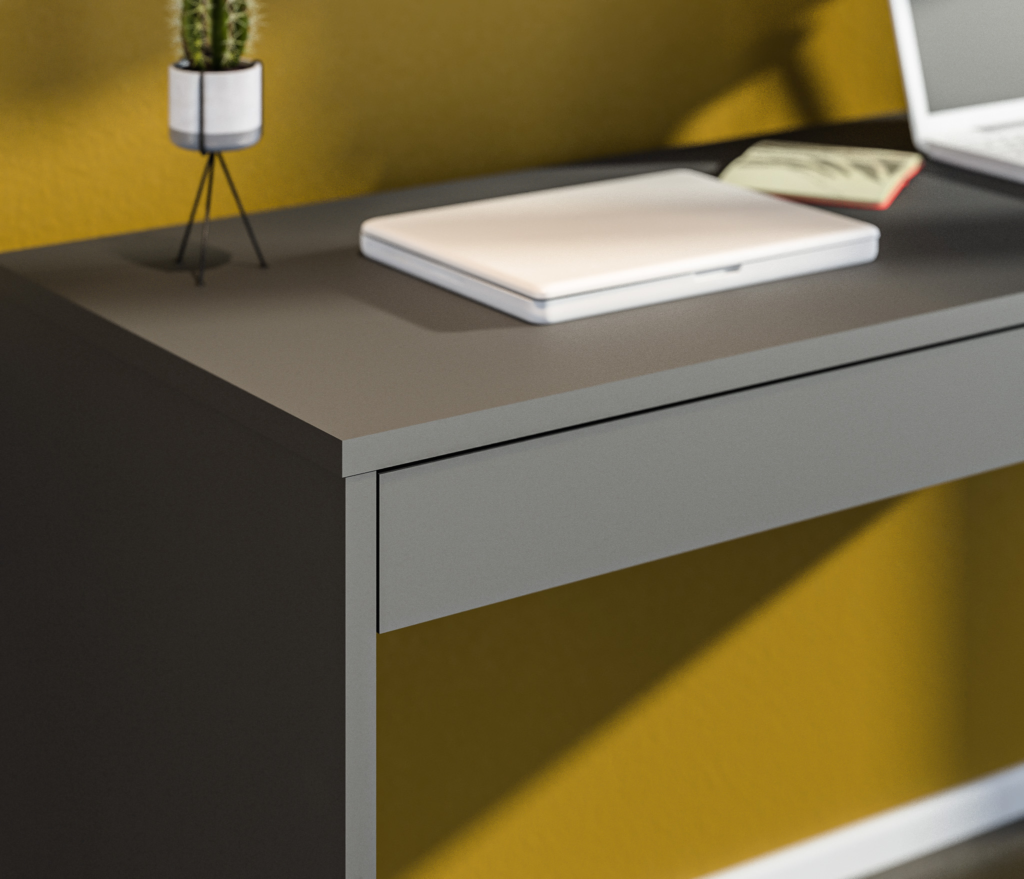 Стол изготовлен из высококачественного ЛДСП цвета Диамант серый, этот материал обеспечивает прочность и долговечность стола, а также делает его легким в уходе.